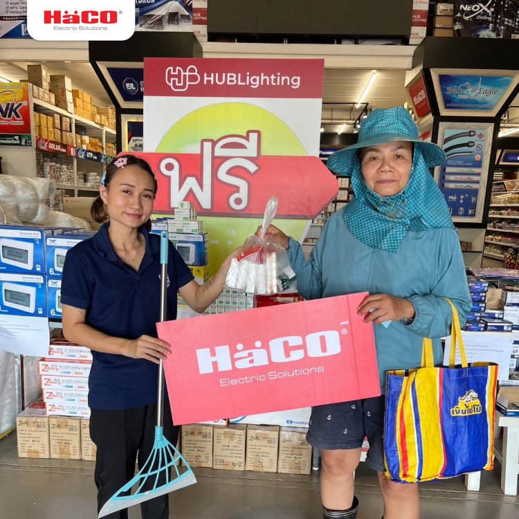 บริษัท ฮาโก้ อิเลคทริค (ประเทศไทย) จำกัด ได้ร่วมเป็นส่วนหนึ่งในการบริจาคอุปกรณ์ไฟฟ้า ให้แก่ผู้ประสบภัยน้ำท่วมจังหวัดเชียงราย ผ่านร้านค้าฮับไลท์ติ้ง เชียงราย