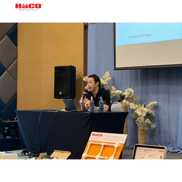 ได้รับเกียรติจากวิทยากรรับเชิญ คุณศักดิ์ชัย จากบริษัท แผลงฤทธิ์ จำกัด มาเล่าประสบการณ์การใช้งานสวิตช์ Move หน้างานจริง วิทยากรรับเชิญพิเศษจาก แบรนด์ชั้นนำ Huawei มาบรรยายเกี่ยวกับสินค้า Huawei ในกลุ่มสินค้าที่เกี่ยวข้องกับ solar cell