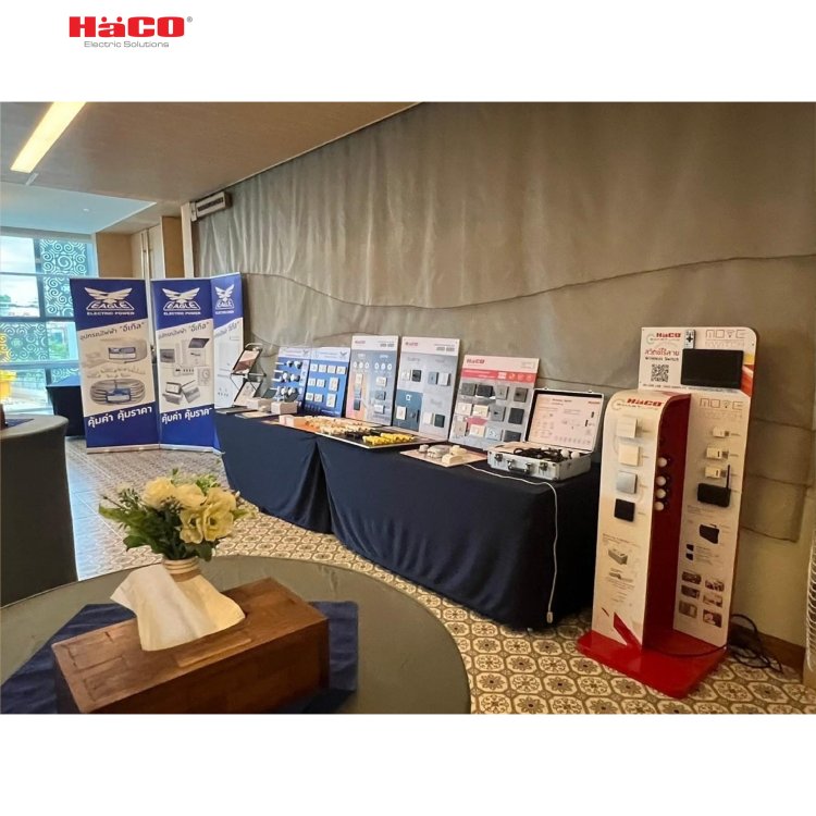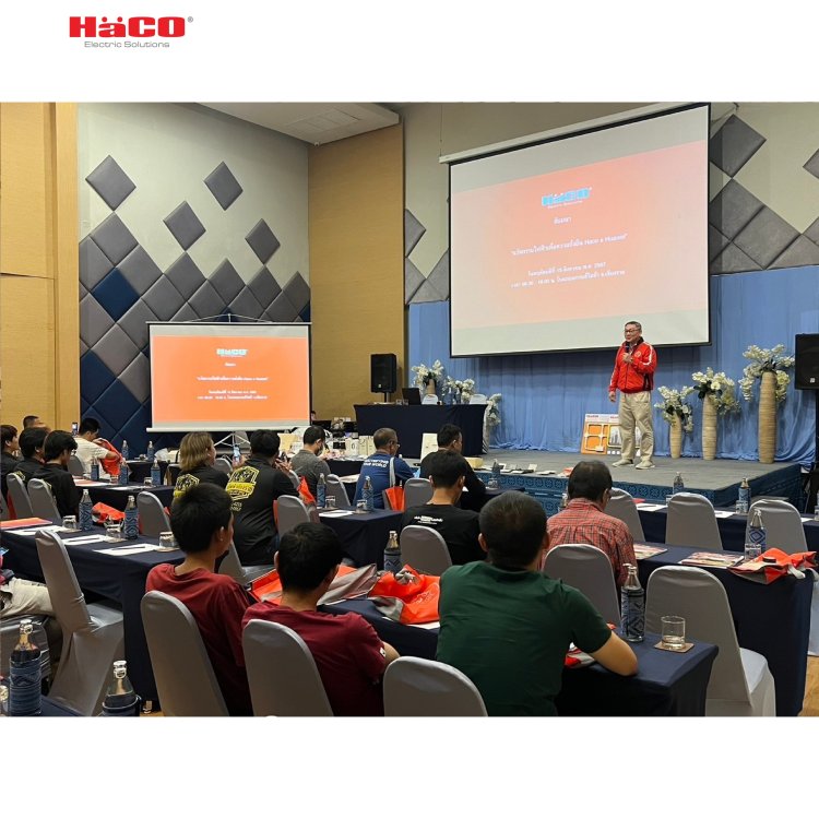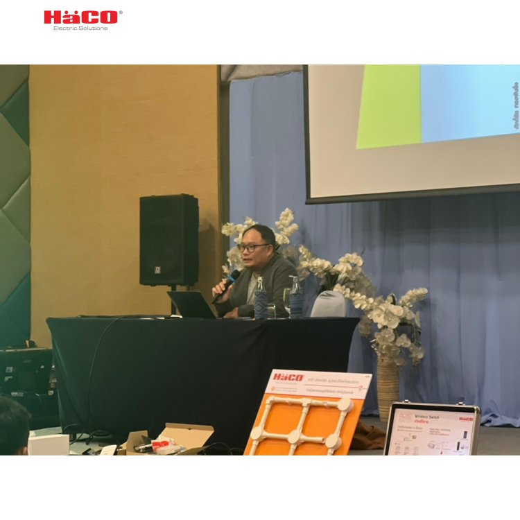 พาชมบรรยากาศงานสัมมนาที่จังหวัดเชียงราย ในหัวข้อ "นวัตกรรมไฟฟ้าเพื่อความยั่งยืน Haco x Huawei" เมื่อวันพฤหัสที่ 15 สิงหาคม 2567 ณ ห้องประชุม โรงแรมแกรนด์วิสต้า จ.เชียงราย โดยทาง Haco ได้บรรยายให้ข้อมูลสินค้าหมวดต่างๆ และสินค้ากลุ่ม IOT