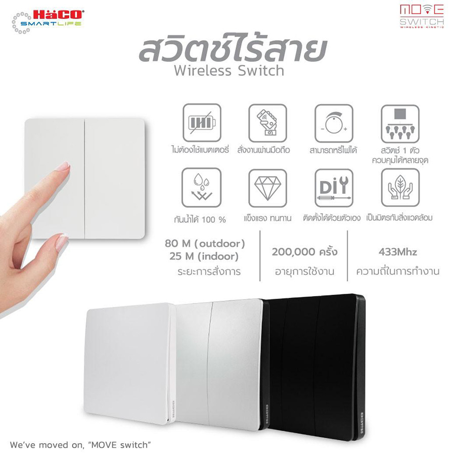 ที่ Haco Thailand เรามีผลิตภัณฑ์สวิตช์ไฟอัจฉริยะ ที่ออกแบบมาให้มีความปลอดภัยสูง และช่วยประหยัดพลังงานโดยเฉพาะ ถ้าหากกำลังมองหาโซลูชันที่ทั้งใช้งานง่าย และตอบโจทย์การใช้ชีวิต ไม่ควรพลาดสินค้านี้โดยเด็ดขาด!
