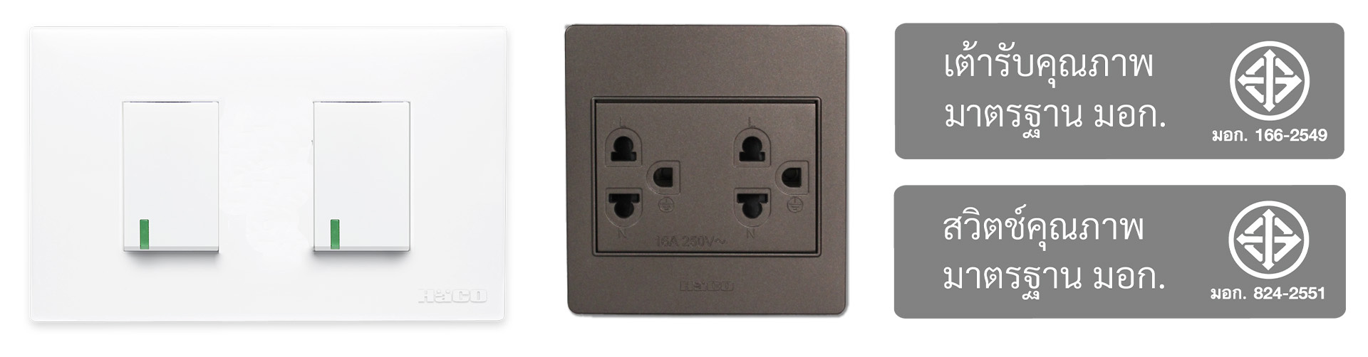 สวิตช์ไฟ และ เต้ารับ จาก Hacothailand