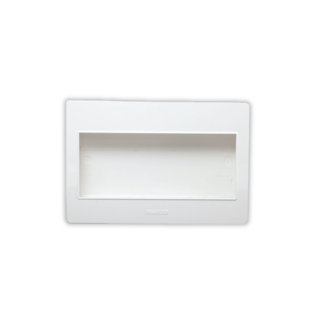 HACO M4N-F 5-gang white cover for light switches, made from quality polycarbonate plastic for use in homes or office buildings.